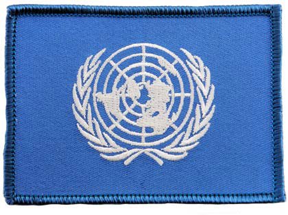 This brand new embroidered patch depicts the flag of the United Nations (UN). This is the same type of patch worn on UN peacekeeping mission uniforms. Heat-seal backing allows buyer to iron this patch onto virtually any fabric.